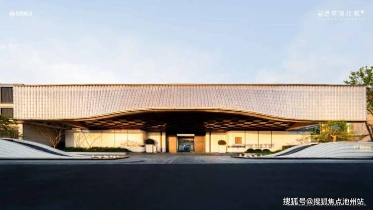 翠隐江粼对品质的追求贯穿于每个细节。入口处的设计就展现了与众不同:全长约46米的门头,由约2000片波浪形水晶玻璃瓦拼合而成,远看犹如一条流动的运河水带。