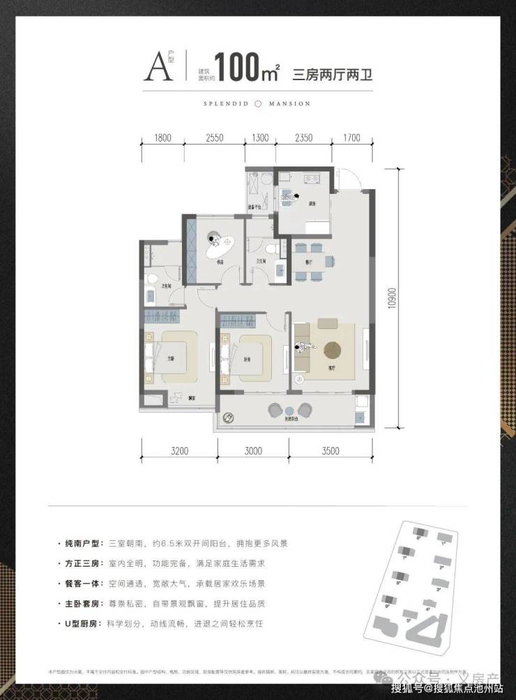 ◎三室朝南:近10米南向面宽,带飘窗、阳台,拥抱更多阳光;
