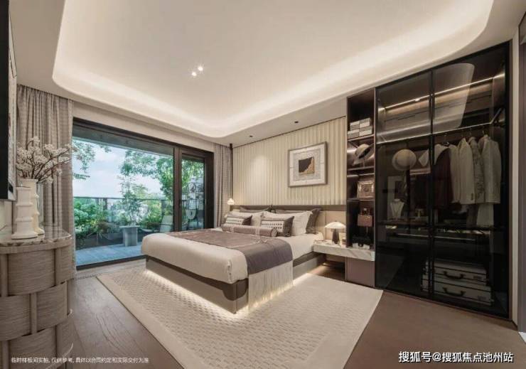 约20㎡超阔主卧套,进深约4.45m,可容纳一字型或L型衣柜