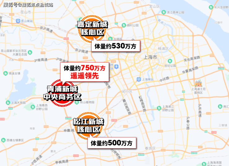 对比一下嘉定新城约530万方,松江新城约500万方的中央商务区,青浦新城中央商务区的能级和规模无疑都是更高的。
