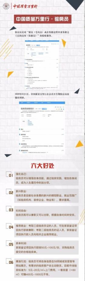 除此以外,中国质量万里行验房员本人信息还可以在家装鉴证网展示,家装鉴证项目执行部根据就近原则指定验房员上门为有需求的业主验房。同时,验房员所提交的合格验房单,家装鉴证项目执行部会按50元-100元/份购买,为有需求的业主提供精装修服务。