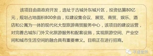 古城西部,将顺城路商业区商业功能整体西移,积极和香港铜锣湾集团、红星美凯龙集团等国内一流团队对接洽谈,启动平遥二中片区全新商业区域建设,构建新型现代化商业中心。同时,针对全县目前教育、医疗等资源分布不均衡的现状,2—3年内,合理布局学校、医院以及体育中心等民生设施,实现全县东西部发展的整体平衡。