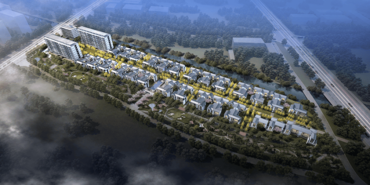 内部借鉴江南四大园林韵色,打造园内盛景。江南名园的巧思演变成东方礼序的入户门庭、下沉式庭园、归家途中更移步易景,每家每户均有“坊、巷、院”相伴,重现江南院墅天地归心的意境之美。