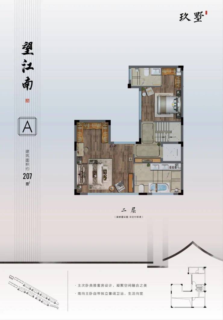 低容积率,区域内独此宋韵 合院建筑,天地为视界 阔境客厅及三层空间奢享 独立泊车空间,尽显尊贵 A户型 建面约207方 望江南