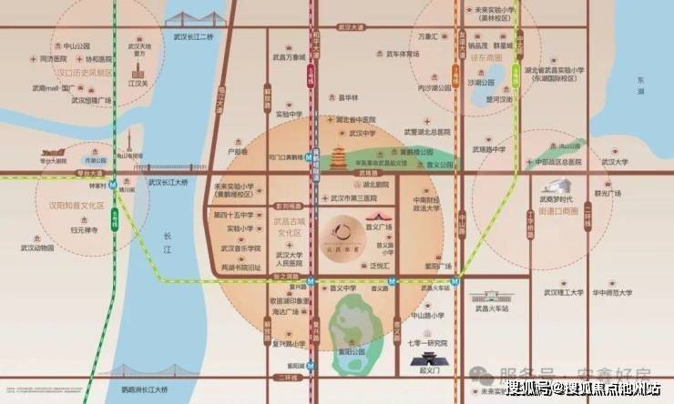 自驾:项目拥有立体黄金路网,走张之洞路和复兴路可快速抵达武昌各大板块;出门上武汉长江大桥则可通达汉口汉阳。