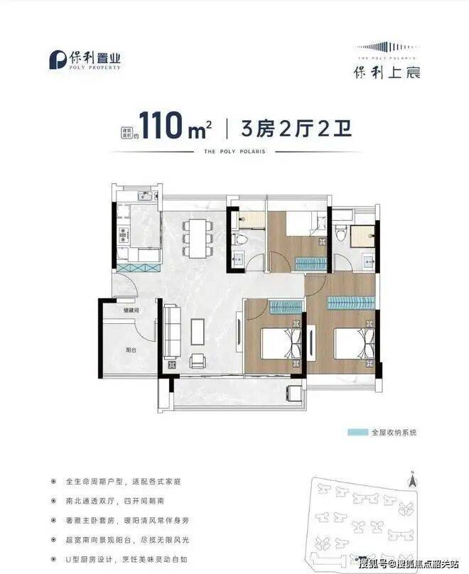 110㎡:保利轻奢户型 南北对流 四开间南向