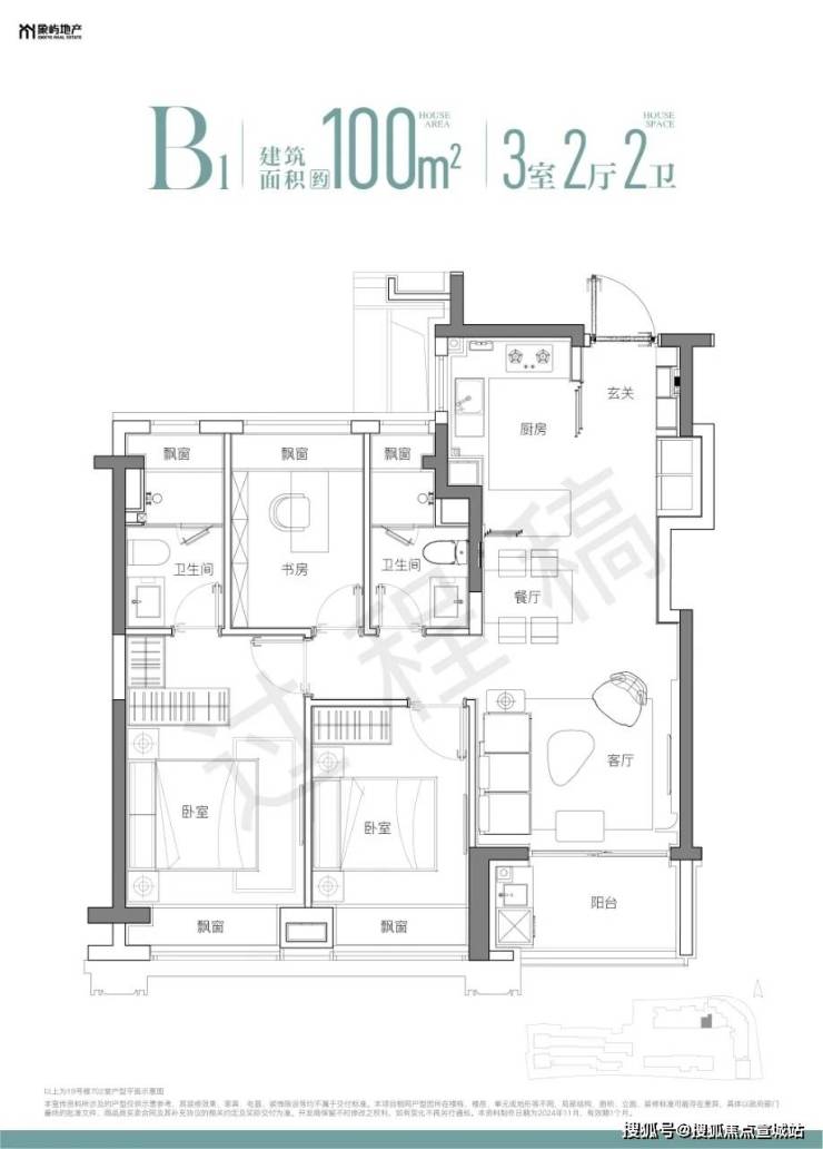 项目高层产品均为100㎡左右3房户型,一梯6户: