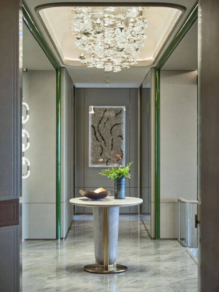 ✨鳄鱼皮编织纹墙布背景搭配鎏金翡翠奢石,通透飘逸,奢贵内敛。