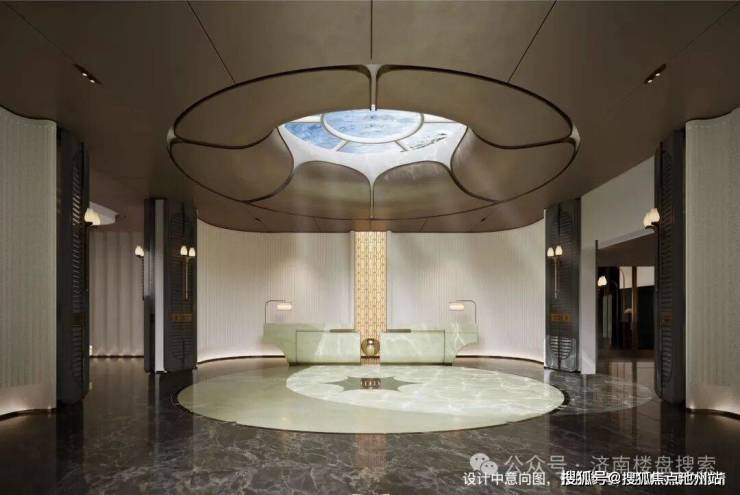 ▶ 奢配恢宏穹顶光瀑的百合光厅:模拟百合花卉之形,青玉与深古铜不锈钢天花,辉映璀璨天光,自成通透无垠之境