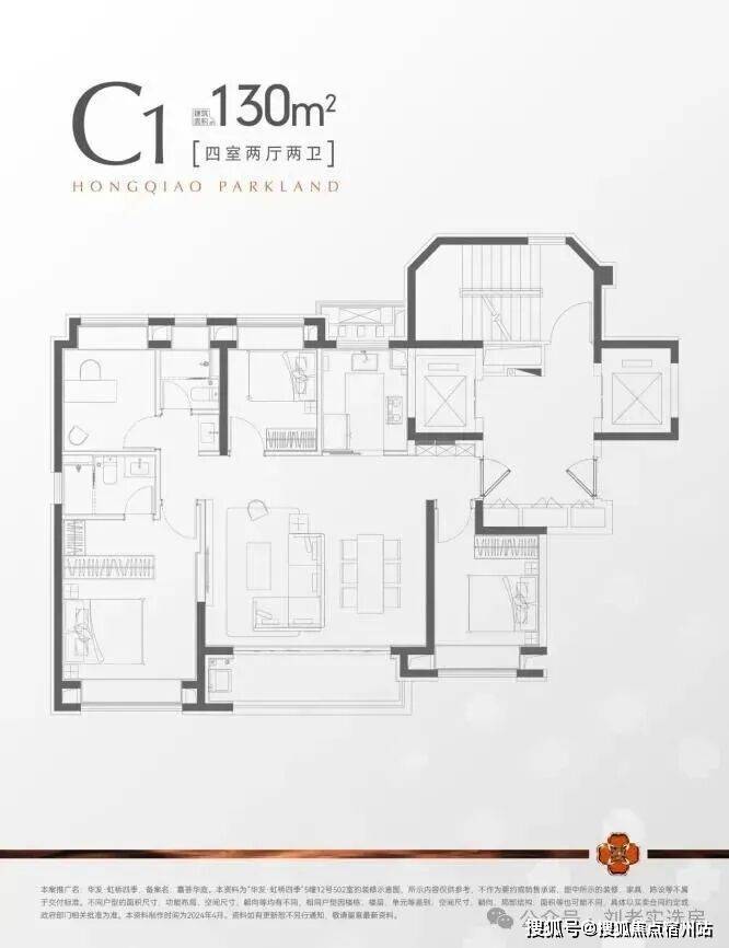 总价仅约735万起的建面约130m²四房户型,可以说是外环外改善置业王炸产品!
