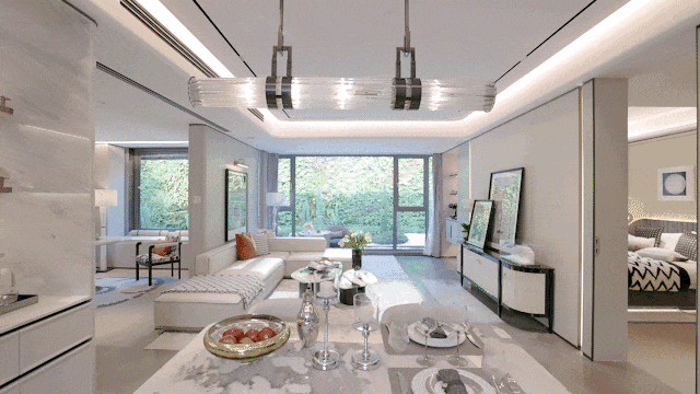 宽奢的门厅+约120米的高定艺术连廊+地上地下双庭院的配置,为业主带来更具仪式感的归家动线。