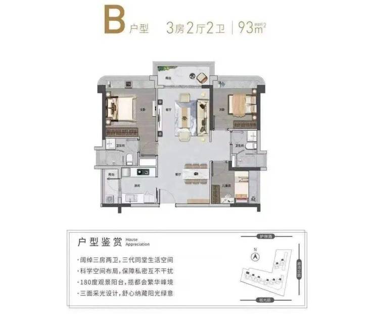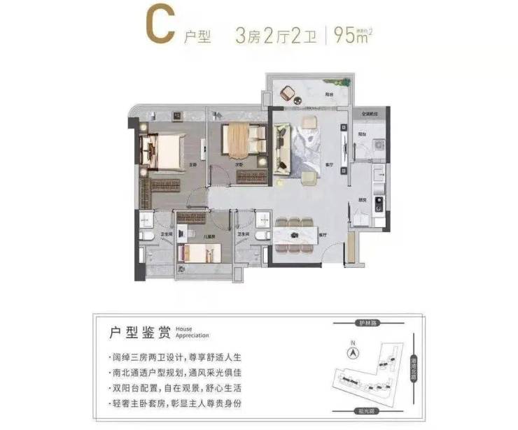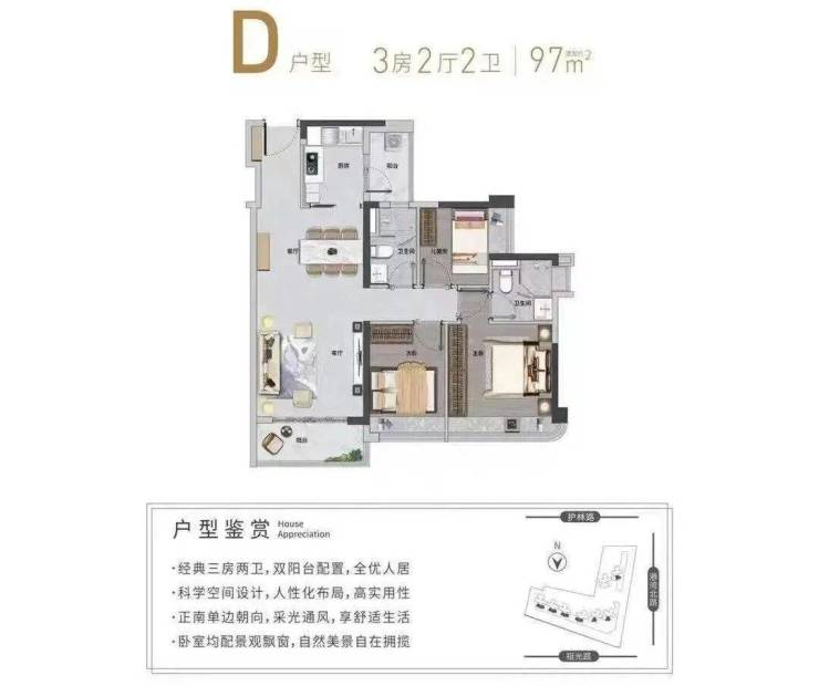 C户型3房2厅2卫|建筑面积约97~98㎡