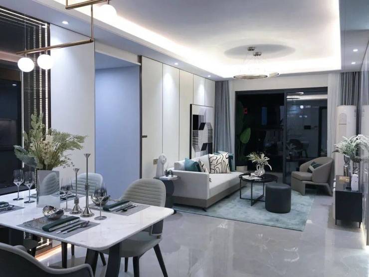 即使空间是有限的,但也可利用布局及自然光线将空间充分利用,得到的可能却是无限的。本次样板展示区的两种户型,均将客餐厅一体化设计,同时贯穿广角观景阳台,打造开阔的南北通透格局,让光线充分进入屋内,增强屋内空间的开扬视觉感。这样的布局将公共区域最大程度组合起来,避免了室内空间的浪费,加强人与空间的紧密联系。