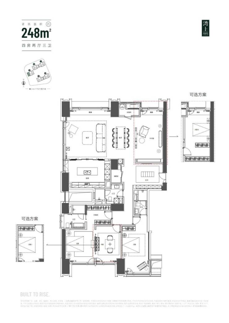 248㎡户型,可以根据需求,定制成超级两房,或三房、四房户型,大大满足了现代家庭多样化的居住需求。