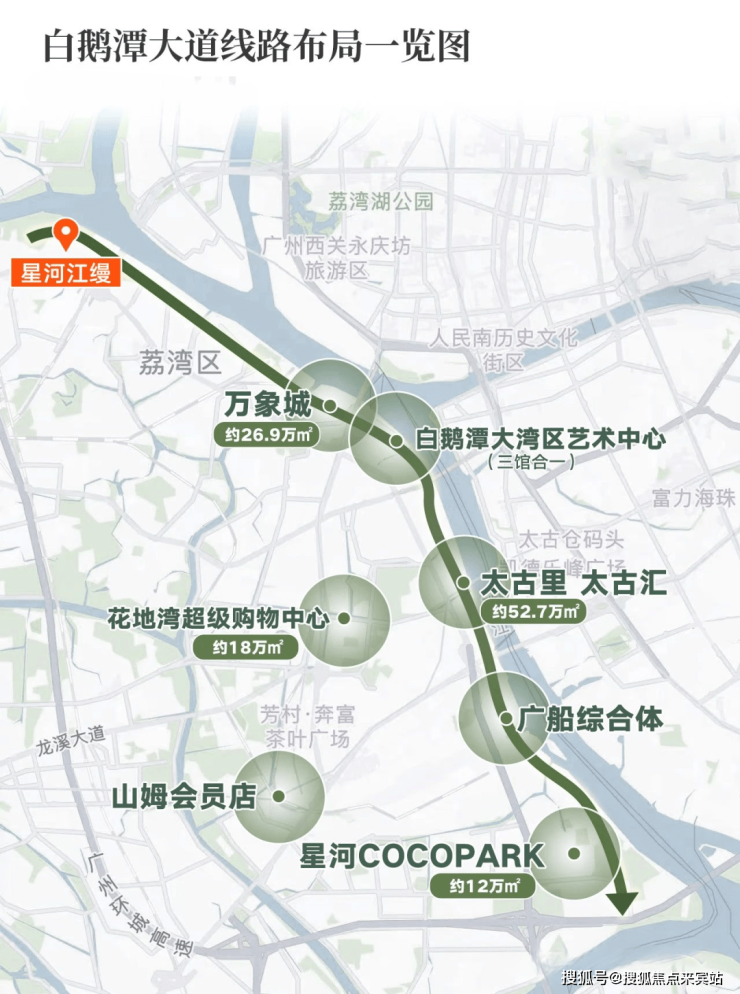 未来通过白鹅潭大道约4公里直达白鹅潭CBD腹地