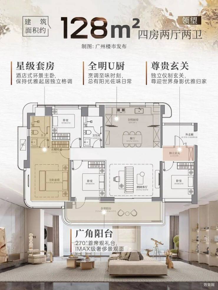 约128-238㎡中轴超新规豪宅,臻藏超级珠江超100%实用率,户户270°转角窗,全广角瞰江视野,境藏滨江质感生活。