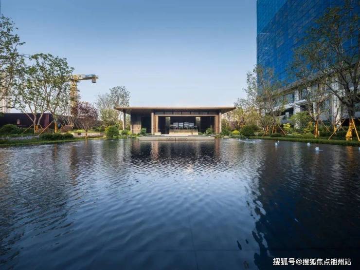 空明水院与摩卡会客厅,为北区内部园林先期呈现的部分,如此大面积的水景和户外会客厅空间,犹如点睛之笔,拉高了整个园林的期待值。水景造价成本高,却为社区生活注入了灵气,带来是静谧和诗意。