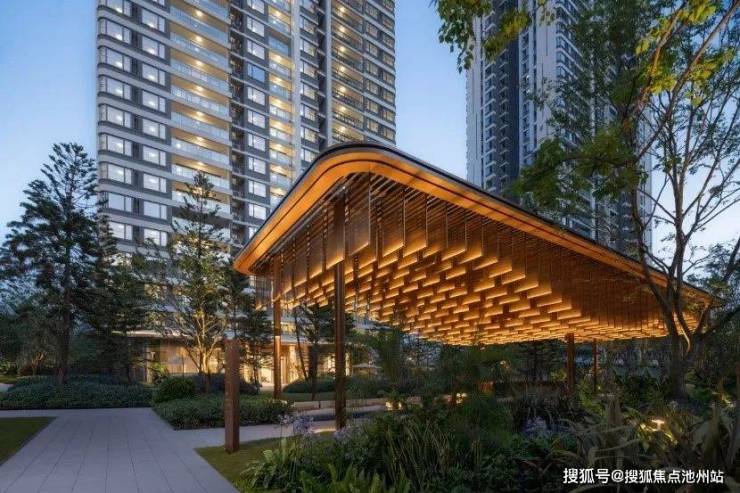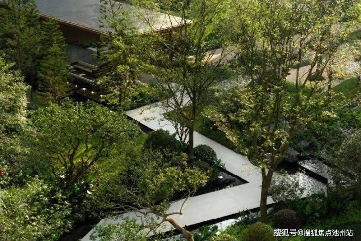 进入园区,映入眼帘的是长江园林八景主题水系,大面积水景向着江河方向缓缓铺开。整个园区更是借助山势地形,景观逐级抬高,精致的会客区、休息区、森林下午茶区,在水池旁、绿荫下错落而现,独具一番静谧的风景。