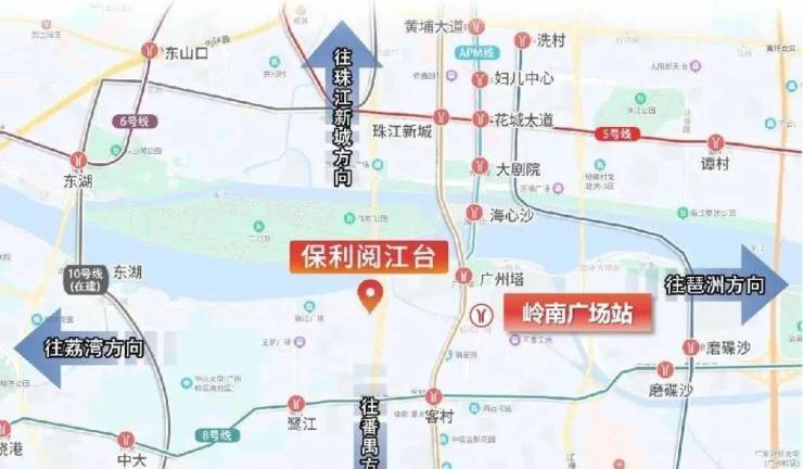 保利·阅江台坐拥珠江新城、二沙岛等高端地标,项目直线距离珠江约354米,距广州塔仅约900米,置身广州繁华市区心脏地带。项目北侧与珠江新城CBD、二沙岛隔桥相望,周围交通便利:广州大道、珠江新城、琶洲西区、海珠等核心区域触手可及。自驾出行只需10分钟即可畅达广州CBD核心区,地铁3号线、8号线和APM线环绕,未来12号线开通后,交通更加便捷。