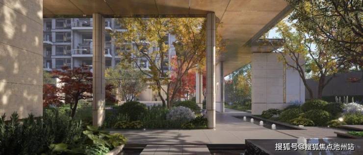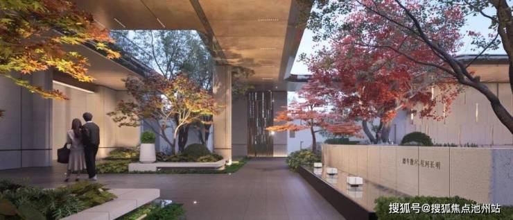 首先看52米宽的社区大门。最亮眼最中心的,是以“嵩山云雾”为主题的雕塑。独创的港湾落客区和双车道进出大门,也充满仪式感。地下中央车站,这可以理解为地下停车场的落客区,不管是业主归家还是访客,既方便又尊贵。以上是第一进,前院区。