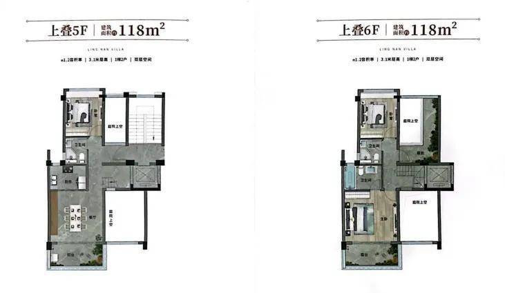 建面约118㎡上叠户型图🎄🎄中建鄂旅投·岭南墅售楼处电话⚡:400 831 7991【售楼处已认证】✅