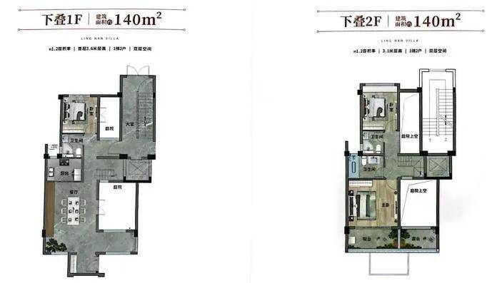 下叠是性价比之王,建面约140㎡,实用面积却高达400㎡,可拓展空间丰富,是三代同堂家庭的优选。