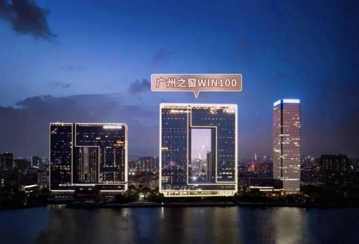 广州之窗·WIN100,整体建筑造型,自南向北看呈“001”的造型,代表着第一;自北向南看呈“100”的造型,代表着100满分,成为了时代精神的象征与珠江畔耀眼的地标建筑。