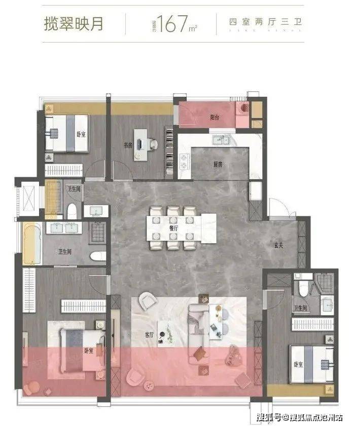 设计师以东方摩登韵味打造双重下沉庭院,以高规格规划约4000方会所,集月华阁、健身中心、私宴及共享餐厅、行政酒廊、瑜伽馆、壁球馆、室内全龄恒温泳池为一体,以及高层全架空主题空间,完善全龄乐动的生活体系。