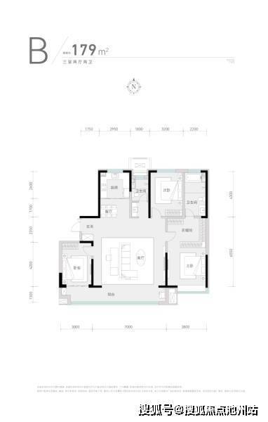 洋房产品为建面约147㎡三室,整体户型全明通透,采取独立玄关设计。南向三开间,约11.45米的面宽,为室内带来充沛的阳光。客厅和南向次卧外接约7.8米通阳台,无论日常晾晒、莳花弄草还是品茶休闲,都能轻松安放。