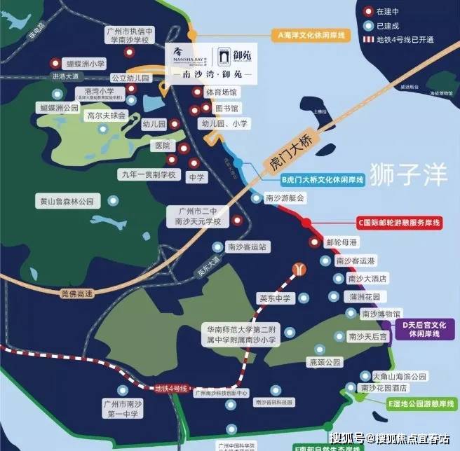 海陆双线并行。地铁4号线(已通车)、地铁22号线延长线(规划中)、32号线(规划中)、明珠湾大桥、虎门大桥、南沙客运港、邮轮母港、莞佛高速等水陆多维度交通在此吹响了“集结号”,形成5维立体交通路网。