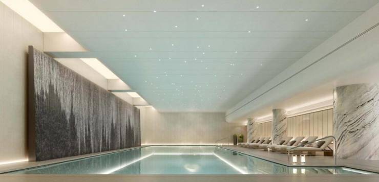 稀缺的下叠产品带有约50-80㎡下沉式庭院,地上三层空间包含影音室、保姆房和屋顶阳光房;上叠户型则拥有约40㎡的空中露台,部分单元配置无边界泳池。全系采用日立中央空调、大金新风系统、菲斯曼地暖组成的"恒温恒湿"体系,卫浴空间标配汉斯格雅境雨系列和杜拉维特智能卫浴。