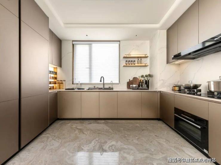 U型厨房;多功能书房,平常是父亲沉浸式办公的主场,周末降下幕布即成为孩子的游戏天地,也可满足宾客的留宿需求。