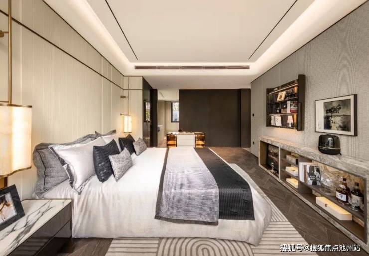 臻奢主卧套,约3.6米墅级面宽,营造奢华精致的高级生活体验;双台盆洗漱区的人性化设计,让二人可同步使用互不干扰。晨起高峰期的 “时间自由”,正是对当代家庭生活痛点的精准回应。