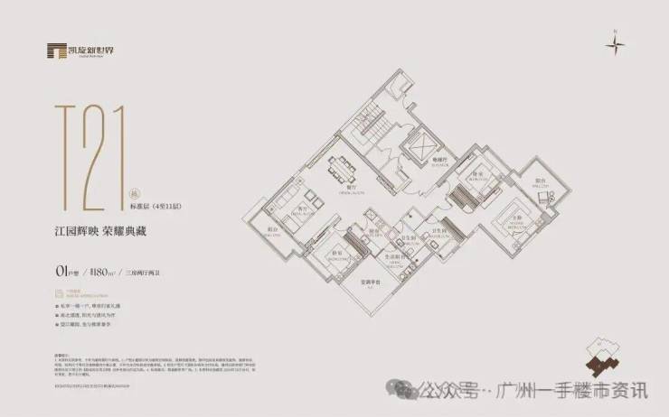 珠江新城凯旋新世界将推出项目最后的一手住宅内部保留单位,主要在售产品为三期的广粤尊府,三期可售户型涵盖北向195㎡三房、西南向173㎡、180㎡的三房和头排一线江景的245㎡、259㎡四房,以及280㎡和304㎡的五房楼王户型,三期广粤尊府住宅总共可售货量并不多。