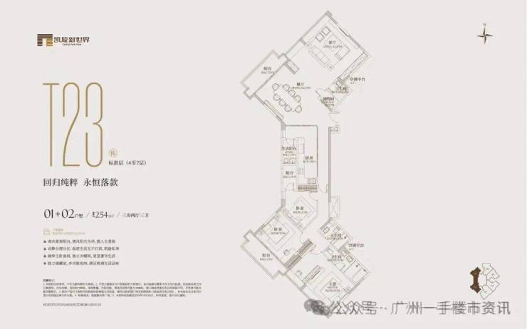 二期广粤观邸在售楼栋为T7、T10、T23、T26,可售户型涵盖132-172-254-277-304-835㎡产品(部分大面积户型全层/半层打通,双证出售),虽然二期景观比不上三期的南向江景,但可以一览凯旋新世界的超大园林景观,同时这也意味着新世界地产将全面清货退场。