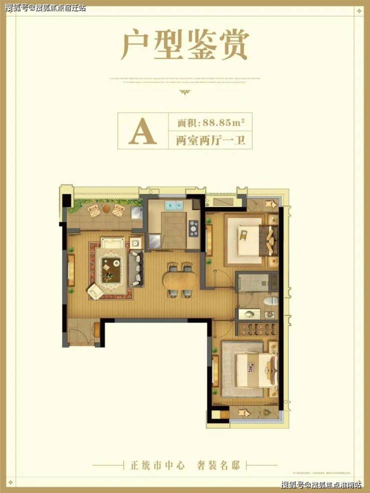 建面约89㎡的大两房,在市区这样的功能性还是比较常见的。但该户型南向采光面较窄,只能容纳1个卧室。客厅主要依赖北阳台采光通风,通透性欠佳。