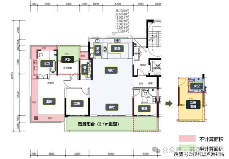建筑面宽,根据公示的11#楼的面宽,简单测算得7栋建筑面宽约在30-67m不等;