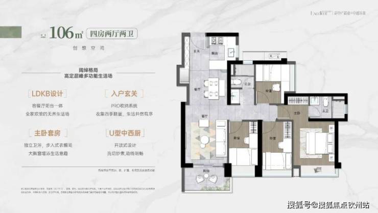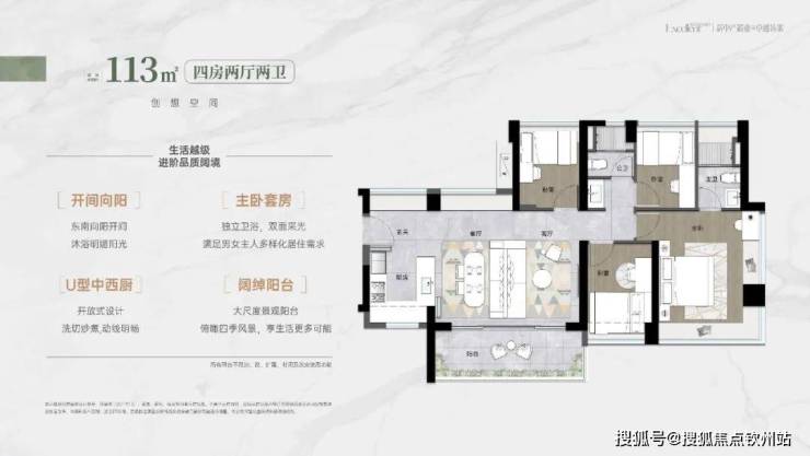 户型面积约80-113㎡3-4房,精装交付。