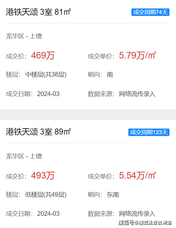 周边二手价格,例如港铁天颂,近期81㎡3房二手房成交价在5.7万/㎡。