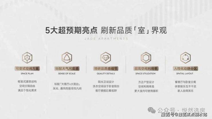 【五境归家,仪式感生活新体验】以“阔景门头-酒店尊享归家-风雨连廊-核芯水院-精奢门庭”五大场景,联动“归家-停泊-过廊-观园-入户”五进式归家礼序,各个空间相对独立且互不干扰,清晰流畅的动线,起承转合,层层递进,打造无以复加的尊崇归家体验。