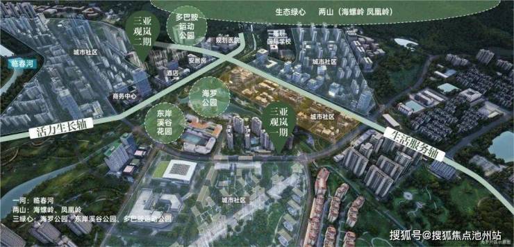 板块借“一河两山三绿心”织就三亚城芯罕见“山水绿网”,让自然与城市资源双向赋能,每一步皆穿行于自然,重塑城芯生活价值。