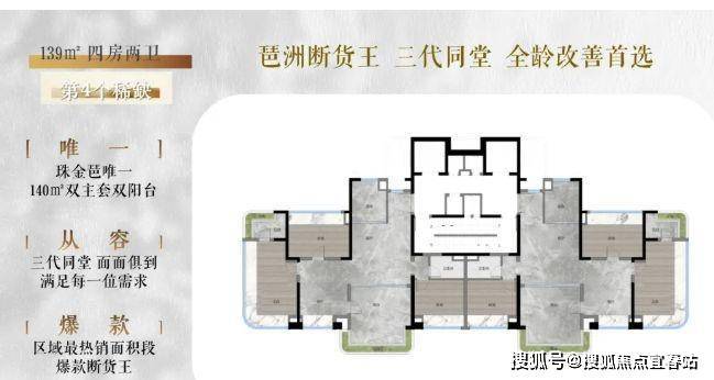 作为主力户型,140㎡同样延续了南北对流双阳台四房的设计优势,空间尺度更为宽敞。客厅宽敞明亮,可容纳大型家具,适合家庭聚会和娱乐活动。阳台视野开阔,可欣赏小区园林或周边景观。卧室空间舒适,主卧可能配备步入式衣帽间,进一步提升居住的舒适度和便利性。在装修细节上,与 120㎡户型一脉相承,同时在空间布局上更加注重舒适性与功能性的平衡,满足家庭不同成员的生活需求。
