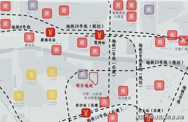 交通条件逐步完善,项目距离广州地铁 8 号线和 11 号线的琶洲站仅 900 米,步行可达。针对当前无路无桥的现状,采取两步走策略解决通行问题。一是计划 2025 年一季度搭设黄埔涌便桥,连接琶洲中区,作为临时道路;二是计划 2026 年四季度建成周边 7 条永久道路,其中会展东路最为关键,可直达广交会展馆,并串联新港东路、阅江路等,便捷通往珠江新城、金融城,大大提升了出行的便利性。