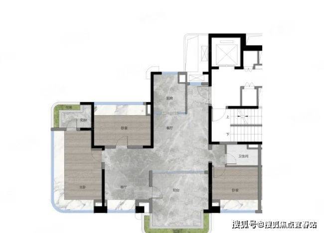 该户型为南北对流双阳台四房设计,使用率高达 120%,空间利用高效。客厅与餐厅相连,形成宽敞的公共活动区域,南北通透的设计保证了良好的通风与采光。双阳台不仅增加了室内采光面,还为居住者提供了更多的休闲空间,可打造为空中花园或晾晒区域。卧室布局合理,动静分区,保证了休息空间的私密性。主卧配备独立卫生间,提升居住品质。室内装修细节满满,如门墙一体化设计,将缝隙将至毫米级,实现星级酒店的静音、隔声功能;厨房采用宽幅岩板墙面,美观且易清洁;石英石台面耐磨、抗污迹,方便日常使用。