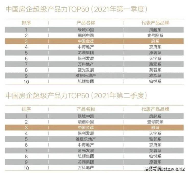 荣登2021年第一二季度中国房企超级产品力TOP3