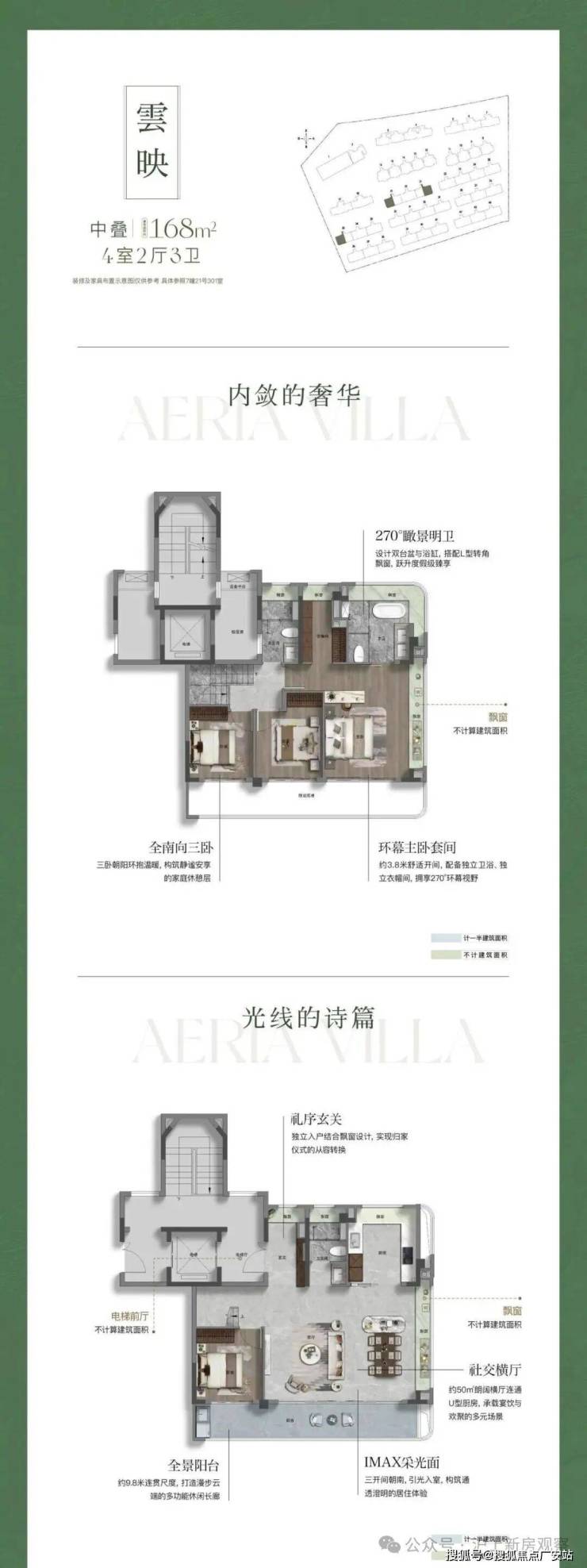 极致通透:中段通过窗墙比优化(从0.56提升至0.67),使立面更显轻盈通透,最大化引景入室。