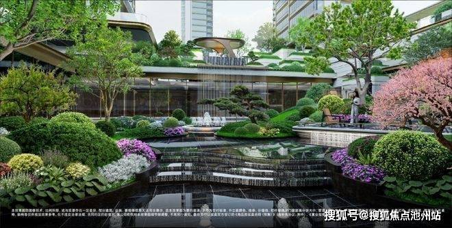 项目整体抬升约5米,创新性地构建了一个“空中花园”体系。通过“一环两轴”串联七大主题浮岛,叠瀑庭院、无边界泳池、童玩乐园等场景错落镶嵌其中。这不止是绿化,更是一个功能与观赏性兼备的立体森境,将生活从地面延伸至空中。