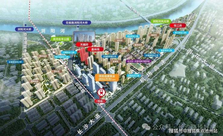 约2000米浏阳河风光带(在建)、约27万方滨河合丰公园(在建)、约2万方平阳生态公园(在建)、东湖湿地公园(在建)等环伺项目周边,公园+河居双重优势叠加,长沙在售项目罕见。