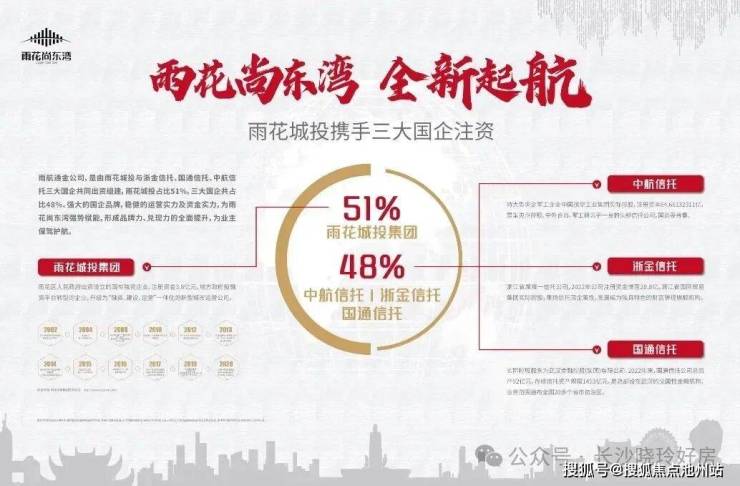 雨航通金公司,是由雨花城投与浙金信托、国通信托、中航信托三大国企共同出资组建,雨花城投占比51%,三大国企共占比48%。强大的国企品牌加持,稳健的运营实力及资金实力,为雨花尚东湾强势赋能,形成品牌力、兑现力的全面提升,为业主保驾护航。