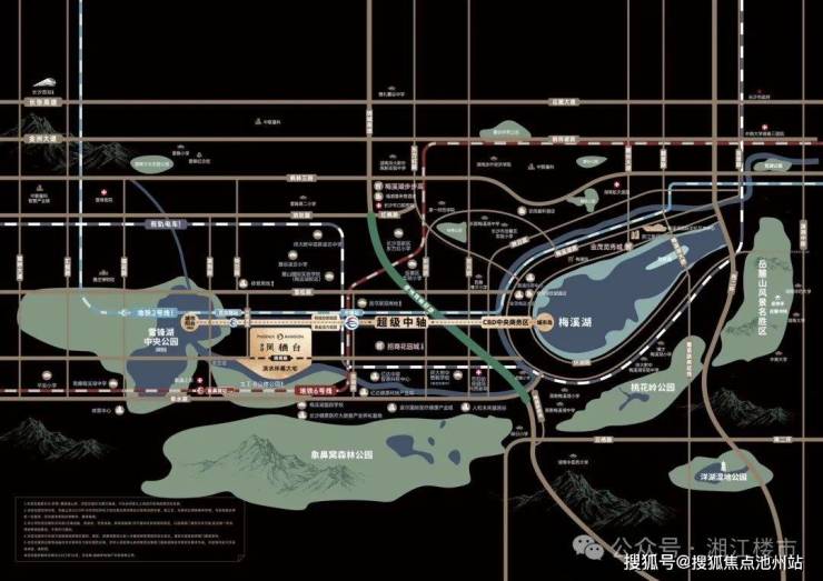 作为梅溪湖二期「超级中轴」旁唯一临山瞰水的纯改善盘,项目占据「一轴双公园」核心位置: